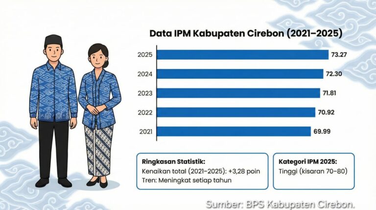 Peningkatan IPM mencerminkan perkembangan capaian pembangunan manusia di Kabupaten Cirebon dalam aspek kesehatan, pendidikan, dan kesejahteraan masyarakat.