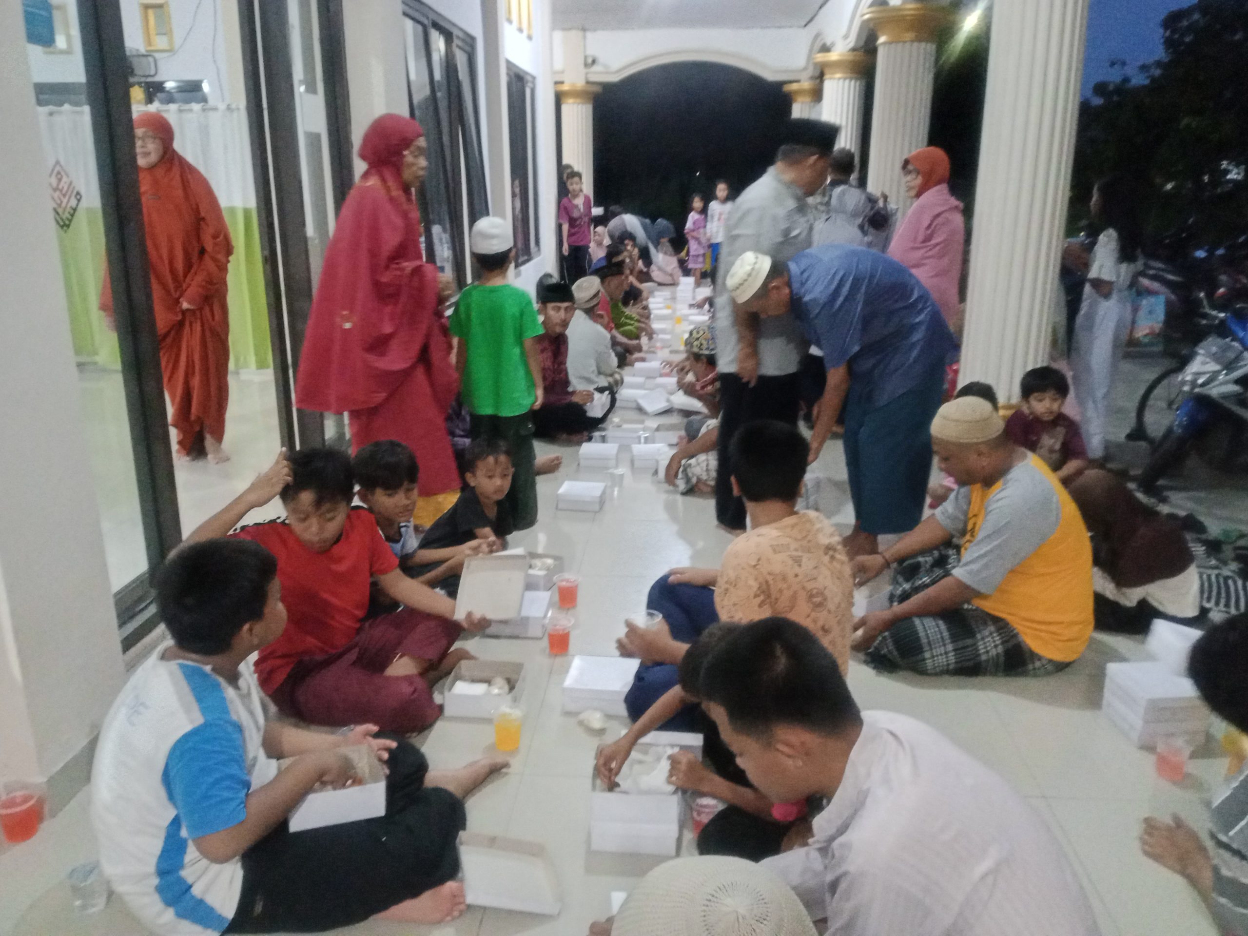 Dalam pelaksanaannya, Mulyana selaku Seksi Majelis Tabligh dan Dakwah yang juga marbot masjid bersama Suratno dari Seksi Majelis dan Kemasyarakatan membagikan paket nasi kepada jamaah yang hadir untuk berbuka puasa bersama.