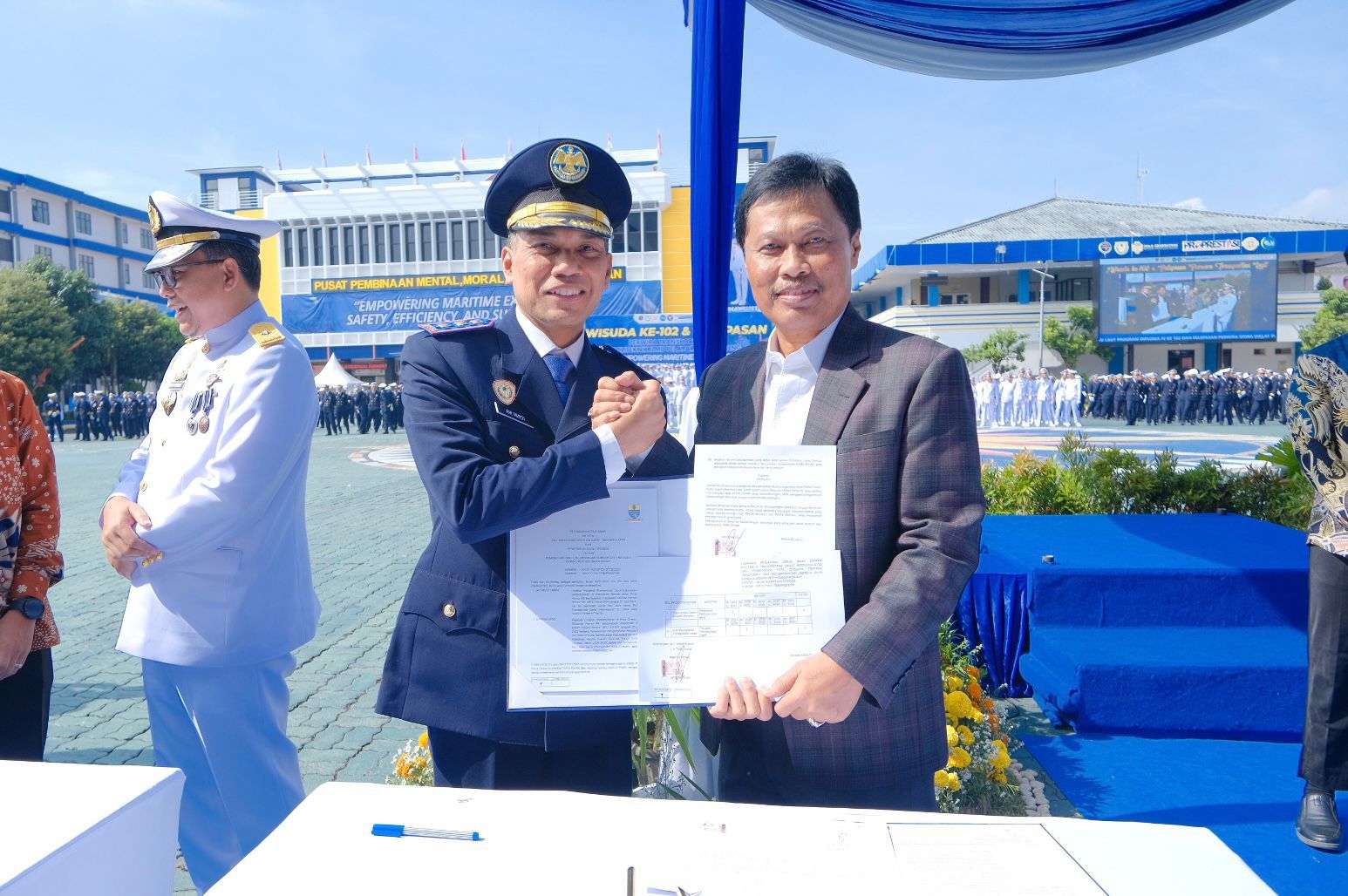 Penandatanganan kedua kesepakatan tersebut dilaksanakan di Politeknik Ilmu Pelayaran (PPI) Semarang, Kamis (9/4/2025). Momentum ini bertepatan dengan pelaksanaan Wisuda ke-102 dan Pelepasan Perwira Transportasi Laut, sehingga menjadi bagian dari rangkaian kegiatan yang sarat makna dalam dunia pendidikan transportasi nasional.