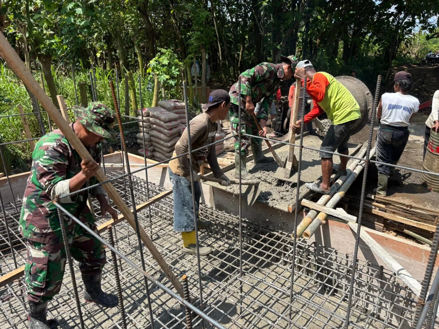 Kegiatan gotong royong ini berlangsung dengan penuh antusias. Sejak pagi hari, warga dari berbagai kalangan turut hadir, sementara anggota TNI ikut terjun langsung membantu proses pengadukan hingga pengecoran material pondasi. Kebersamaan yang terjalin mencerminkan sinergi kuat antara TNI dan masyarakat dalam membangun fasilitas umum yang bermanfaat bagi banyak orang.