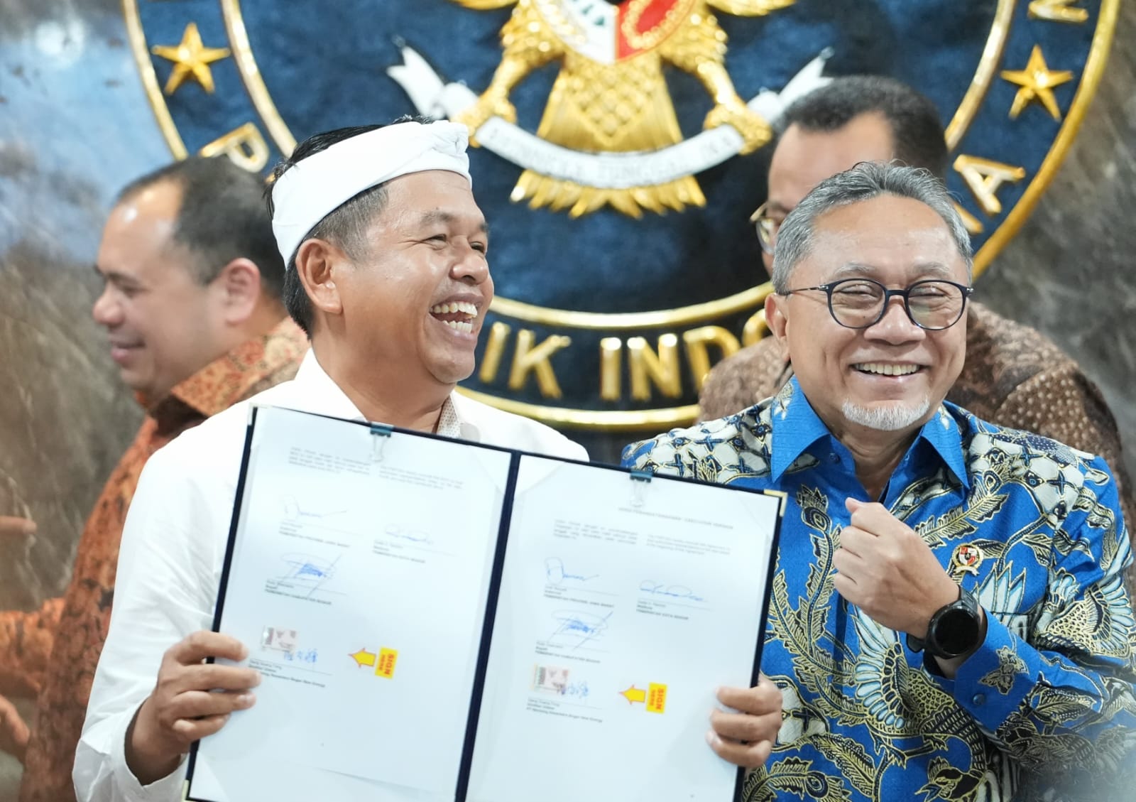 KDM–sapaan akrab gubernur, juga turut menyaksikan penandatangan hal yang sama antara Pemkot Bekasi dengan PT Wangneng Bekasi Environment Nusantara.