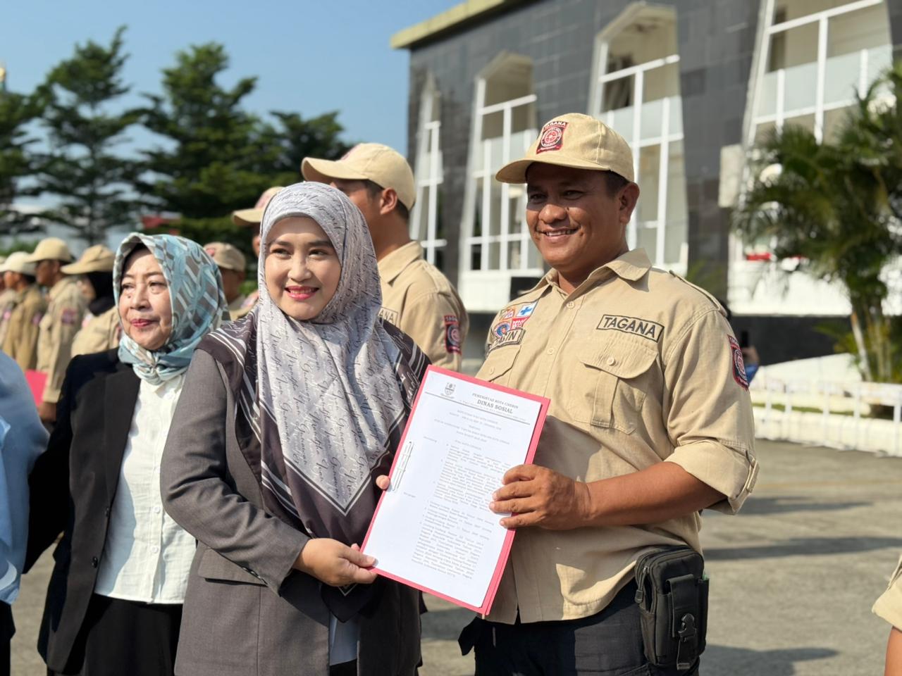Dalam rangkaian upacara tersebut juga dilakukan penyerahan Surat Keputusan Tim Taruna Siaga Bencana (Tagana) Kota Cirebon sebagai bentuk penguatan peran relawan sosial dalam penanganan kebencanaan dan persoalan sosial di masyarakat.
